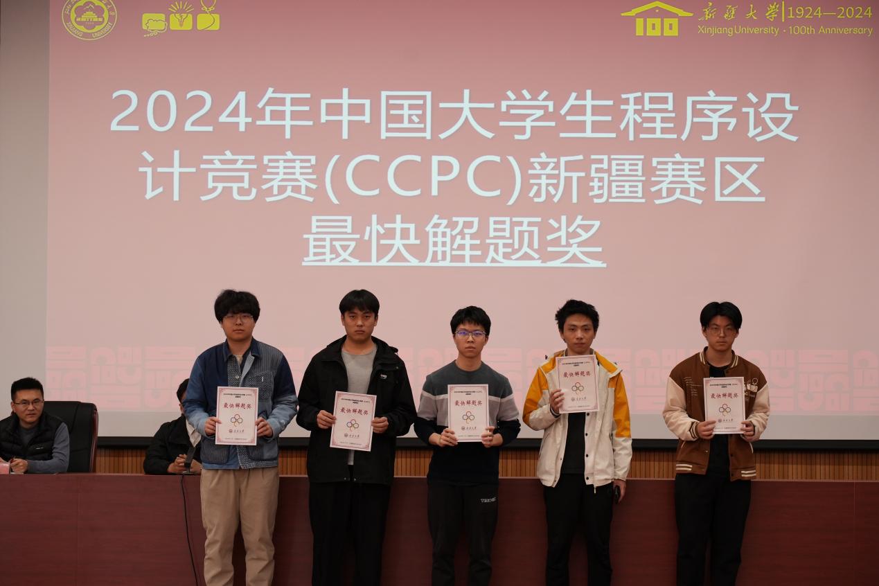 结束比赛的半个小时后,在乐天使体育官网友好校区软件楼二楼报告厅,举办了本次CCPC中国大学生程序设计竞赛(新疆赛区)的颁奖仪式。