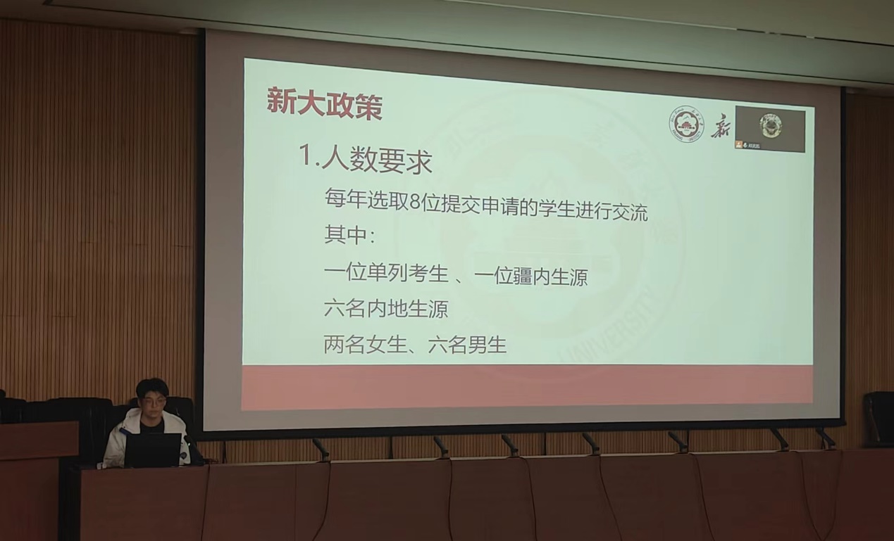 9月24日的讲座邀请了陈秋君,王宏伟,古恩豪三位同学为大一同学分享创赛以及算法学习经验。陈秋君同学向同学们分享了创赛比赛相关经验,从多个方面,包括项目企划、调研准备、竞品分析和资源调配等,向同学们详细介绍了准备创赛项目的基本流程,他鼓励同学们以多元的角度和开阔的视野选择主题,厚积薄发,逐步积累,以收获成功。王宏伟和古恩豪两位同学向大一的同学分享了在中南大学交流一年的生活以及自己在大一付出的努力,并且讲解了中南大学交换的条件及相关政策。